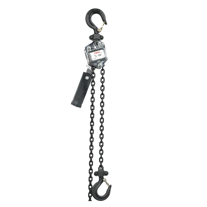4.使用前應檢查上下吊鉤是否掛牢。應使載荷在吊鉤的鉤腔中間。起重鏈條不得有錯扭曲彎曲的鏈環。