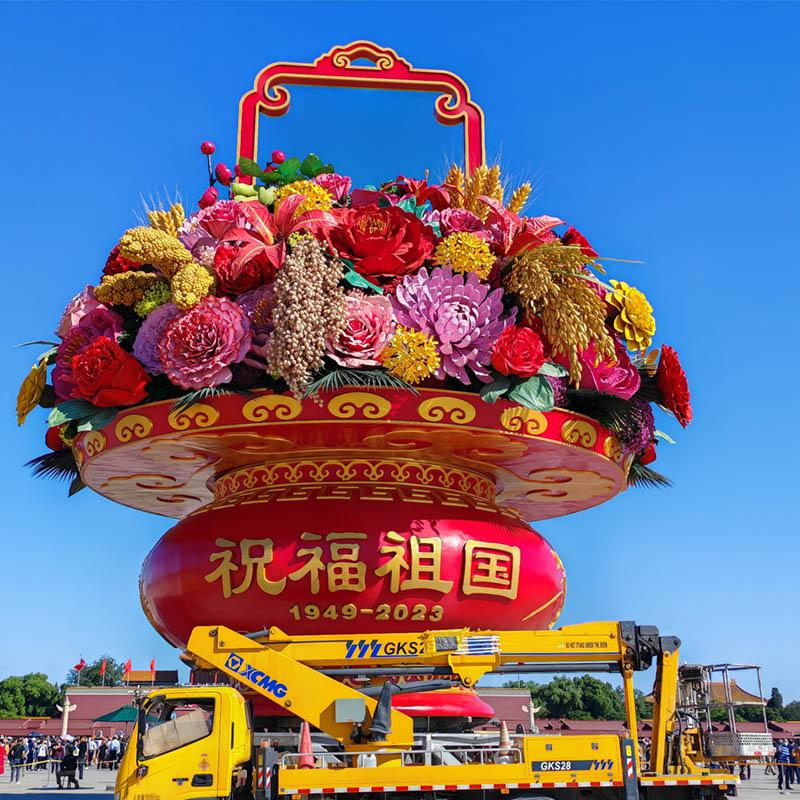 我們工人在安裝天安門花籃的時(shí)候,還需要確定一下起重機(jī)的位置和角度,起重機(jī)的位置要可以準(zhǔn)確地提高吊裝效率,在實(shí)際操作的過(guò)程中,起重機(jī)的操作人員需要具備豐富的實(shí)戰(zhàn)經(jīng)驗(yàn)和技能,他們需要熟悉起重機(jī)的各種控制裝置和操作規(guī)程,確保吊裝過(guò)程能夠順利進(jìn)行。這次吊裝天安門花籃的難度是籃盤和籃肚的合攏,在工作人員長(zhǎng)達(dá)3個(gè)小時(shí)的操作過(guò)程中,一點(diǎn)一點(diǎn)的調(diào)整位置,終于把籃盤和籃肚進(jìn)行了完 美對(duì)接。天安門前的這個(gè)祝福祖國(guó)的花籃,吸引了各地的朋友們來(lái)參觀合影。
